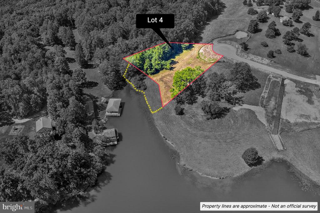 Welcome to Lake Anna’s newest Subdivision “Eagle Point”. Located centrally on the Public Side of the Lake with only 5 Waterfront Lots. All lots have a gentle slope to the waterfront with great views along approved soil reports for a 4-bedroom convention drain field. A state-maintained road installed and will be paved when 3 homes are built. Old power poles and wires to be removed by seller. 95 trees 20 feet wide will be planted along the bike path from the new entrance to the shoreline for privacy.n Lot 4 is located on 1.00 acre with 180 feet +/_ of shoreline. Soil Report and Subdivision plat are in the documents.