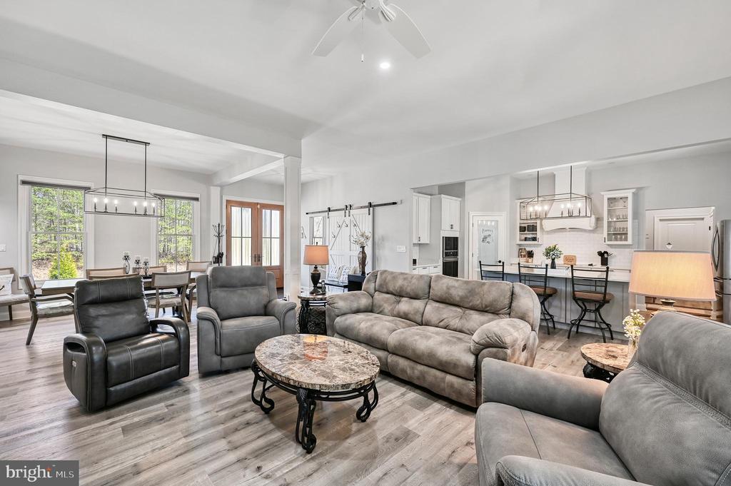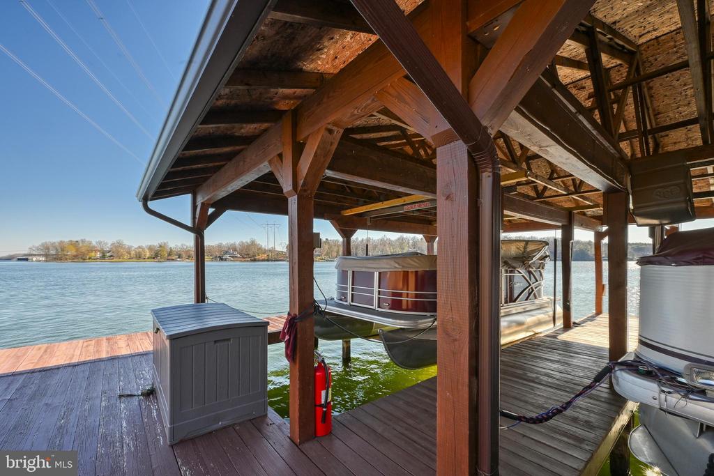 This lovely 3 bdrm/2.5 ba (3 bdrm septic) like new Craftsman Style Home in Prestigious Magnolia Harbour is a MUST SEE! Loaded with upgraded features, this home boasts an Attached 3-Car Finished Garage as well as an AMAZING Detached Fully Finished and Trimmed 3-Car Garage (heated, cooled, full kitchen and half bath). Offering the prefect location by land and water with great access to the lake and tons of modern amenities throughout, this Access Home provides Open Concept style living. Enjoy your very own assigned covered boat slip with conveying Boat Hoist just a short stroll away at the neighborhood Common Area. The single level living includes upgraded laminate flooring throughout and a beautiful gourmet kitchen offering an electric cooktop (additional propane cooktop available and propane piping in place), wall oven and convection microwave, farmhouse sink, granite countertops and soft close cabinets. Cozy up to the propane fueled fireplace in the Great Room or retreat to a generous sized primary suite with huge ensuite featuring a large tiled walk-in shower with bench seat, double vanity sink area and dual walk-in closets affording tons of storage. On the opposite side of the home, you will find two secondary bedrooms and a full hall bath. A dedicated office or multipurpose room with barn door entry providing more flexibility to adapt to your living style is tucked away just off the entry. Lots of Built-In Bookshelves in the Great Room and Dining Area to offer customized style living and storage. Enjoy your morning coffee or evening drink on the enclosed All-Season Room which is already piped with 2 propane gas hook-ups for your grilling needs and a future outdoor gas fireplace. The attached garage offers additional storage shelving. The detached garage with the full kitchen is perfect for additional entertaining and family get-togethers with plenty of room for storiing boats and other toys. And don’t forget the adjacent 12X20 storage shed for those yard tools and lake play toys! Additional features include custom trim throughout, solid core doors, automatic lighted walk-in closets and pantry, dual water heaters allowing for faster hot water at the spigot, a conditioned crawl space for energy efficiency with 4 ft height, commercial grade gutters, security system and exterior camera surveillance! Magnolia Harbour is conveniently located mid-lake on the Public Side of Lake Anna within 5 minutes of Food Lion, convenience shopping, restaurants, wineries, breweries and Lake Anna Taphouse.